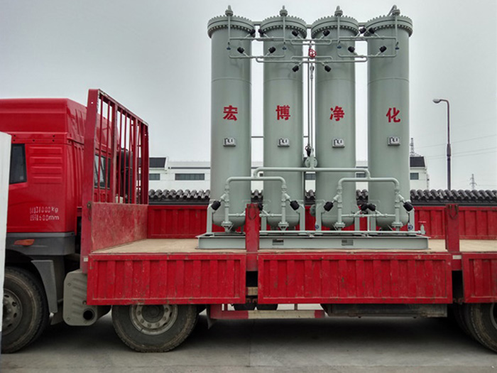變壓吸附制氫裝置以含有氫氣的混和氣(氨分解氣、甲醇重整、天然氣重整等等)為原料,通過特殊的分子篩,利用變壓吸附的原理在常溫下來獲取氫氣的設(shè)備。根據(jù)氣體中氫、氮等氣體在分子篩表面的吸附量的差異及氫和氮在碳分子篩中的擴(kuò)散速率不同,通過可編程序控制器控制程控閥的啟閉,實現(xiàn)加壓吸附、減壓脫附的過程,完成氫、氮等氣體的分離,得到所需純度的氫氣。